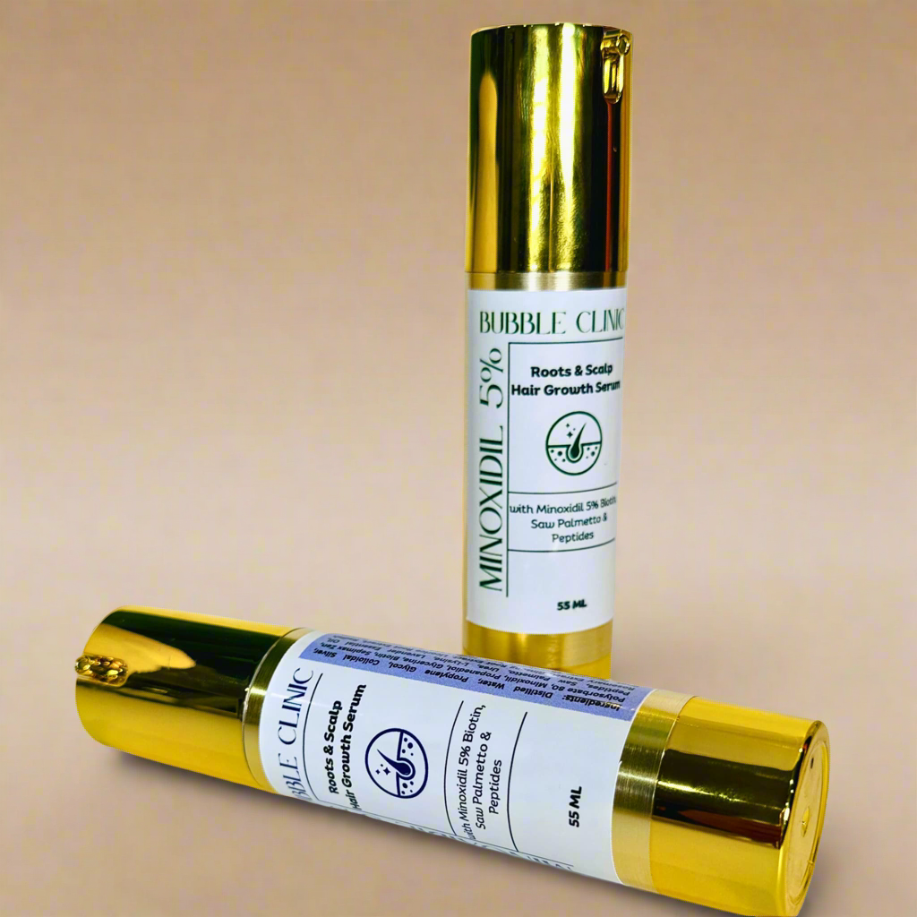 Introducing our advanced Natural Hair Serum for Thinning Hair, formulated for those seeking a premium scalp care and hair regrowth solution. This lightweight, fast-absorbing serum features a synergistic blend of Minoxidil 5%, Biotin, Rosemary, and Saw Palmetto to support visibly healthier-looking hair. Infused with botanical extracts and peptides, this serum nourishes the scalp, helping to improve the look of thickness and vitality. Housed in a deluxe gold airless pump to maintain freshness and potency.